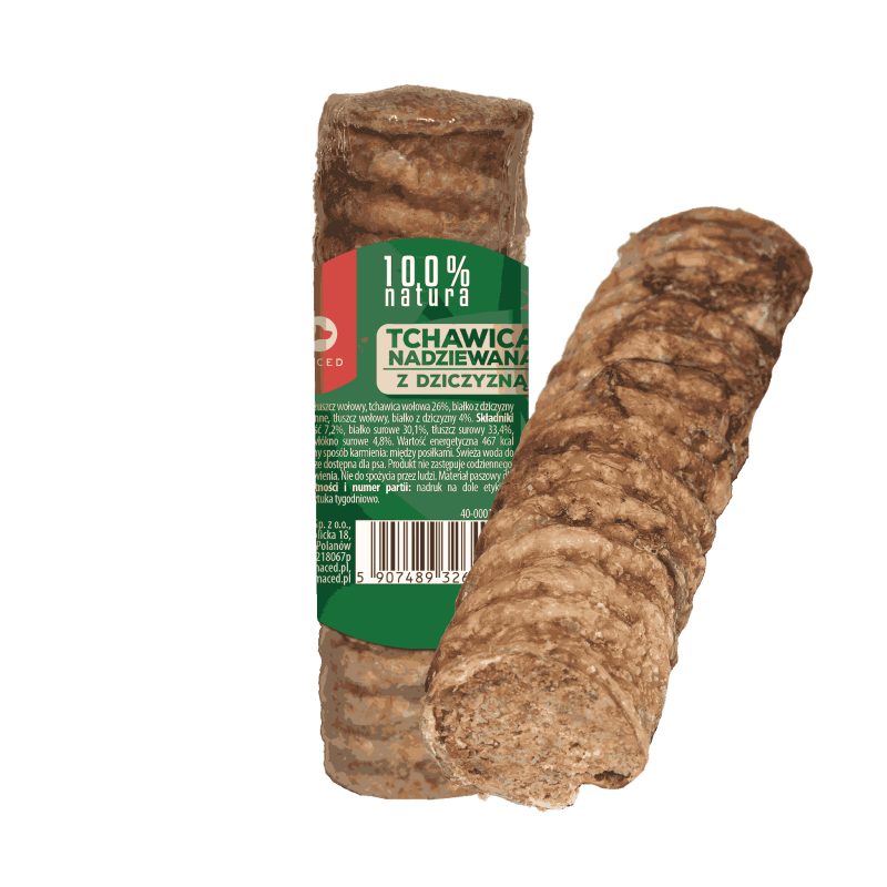 Tchawice i kości nadziewane to naturalne gryzaki pełne pysznego farszu w wielu smakach. Dzięki naturalnemu składowi wolnemu od sztucznych dodatków, ryzyko alergii i nietolerancji pokaromwych jest zminimalizowane, co sprawia, że każdy kęs to naturalna przyjemność. Produkty nadziewane sprawdzą się jako gryzak dentystyczny, który zaspokoi potrzebę gryzienia i żucia, a wylizywalnie aromatycznego farszu zapewni psu wiele zabawy i zajmie go na długi czas.
