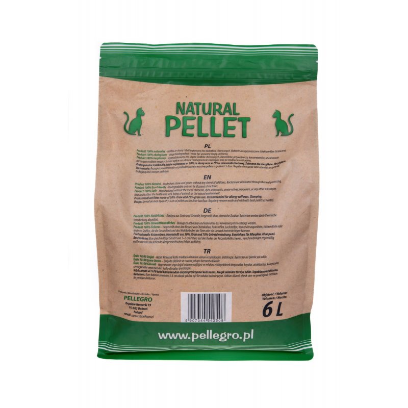 Natural Pellet to ekologiczny żwirek dla kota stworzony z myślą o wymagających opiekunach i ich pupilach. Jego formuła opiera się wyłącznie na składnikach pochodzenia roślinnego – 70% zboża i 30% słomy. Nie zawiera chemicznych dodatków, barwników ani konserwantów, dzięki czemu doskonale sprawdza się u pupili z wrażliwą skórą oraz u alergików.